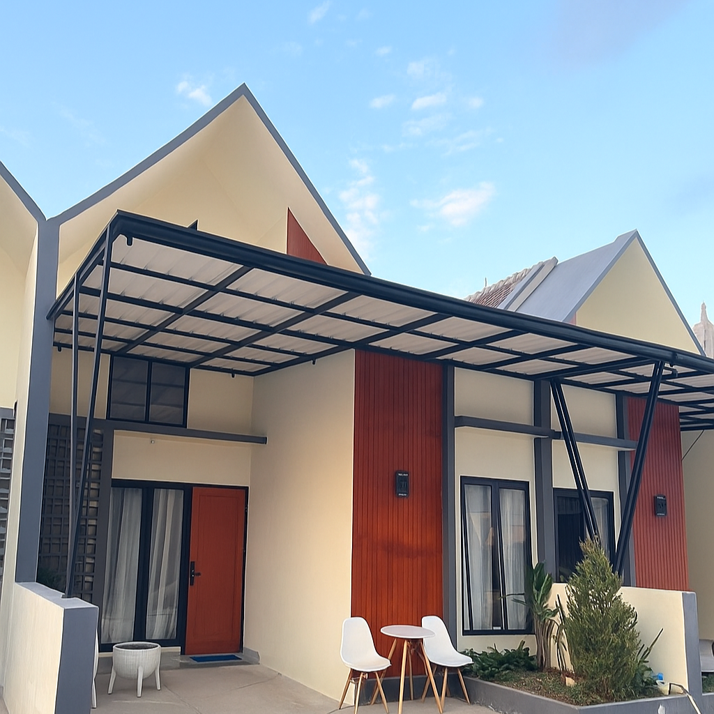 Hunian modern satu lantai dengan desain Scandinavian yang stylish, fungsional, dan nyaman, ideal untuk keluarga yang mengutamakan kesederhanaan dan efisiensi ruang.